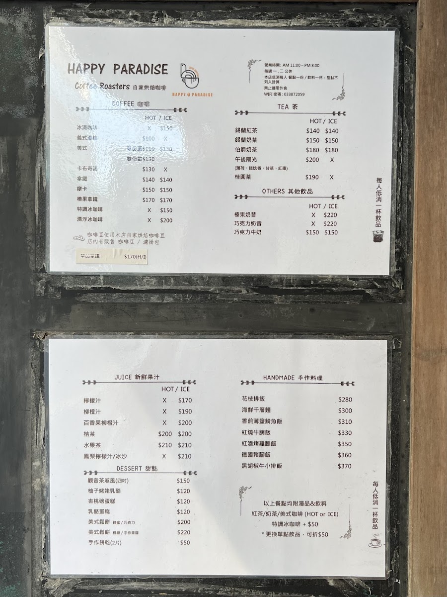 HAPPY PARADISE COFFEE ROASTERS 快樂天堂自家烘焙咖啡 Menu